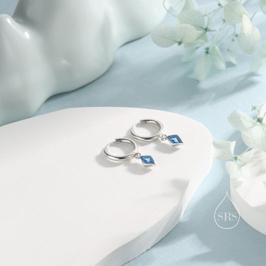 Tiny Rhombus Aquamarine Blue CZ Huggie Hoop in Sterling Silver, Silver or Gold, Minimalist Simple Kite Shape CZ Hoop Earrings