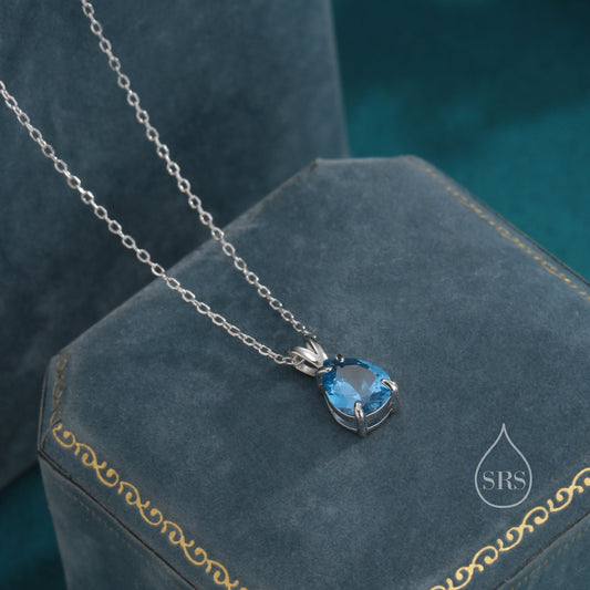 Aquamarine Blue CZ Pear Cut Pendant Necklace in Sterling Silver, 7 x 9mm, Blue Droplet necklace, Diamond CZ