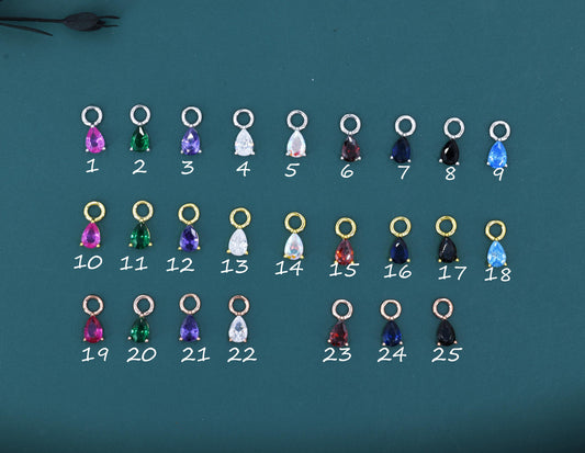CZ Droplet Charms for Huggie Hoops, Sterling Silver, Gold, or Rose Gold, Pear Shaped, Detachable Earrings Charms