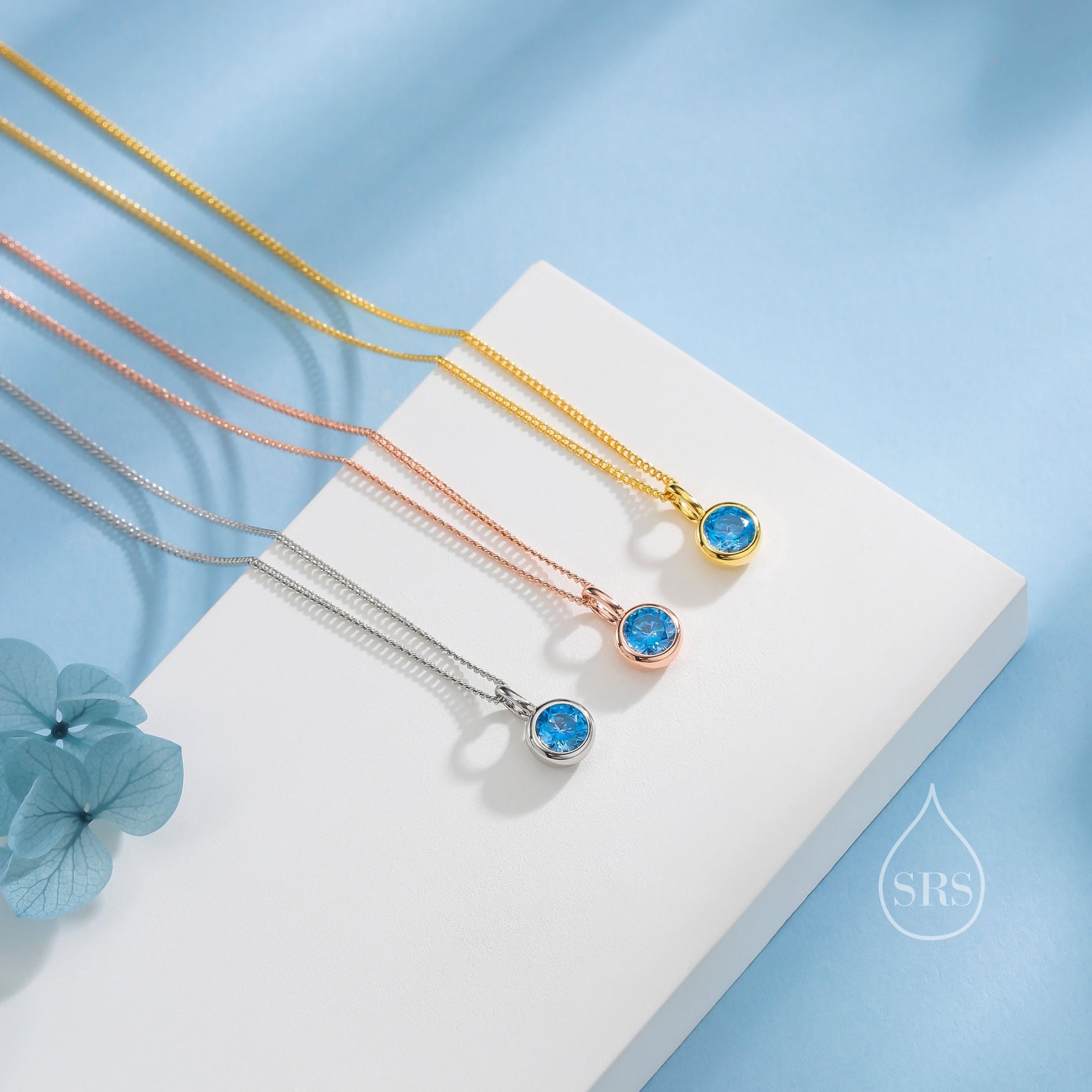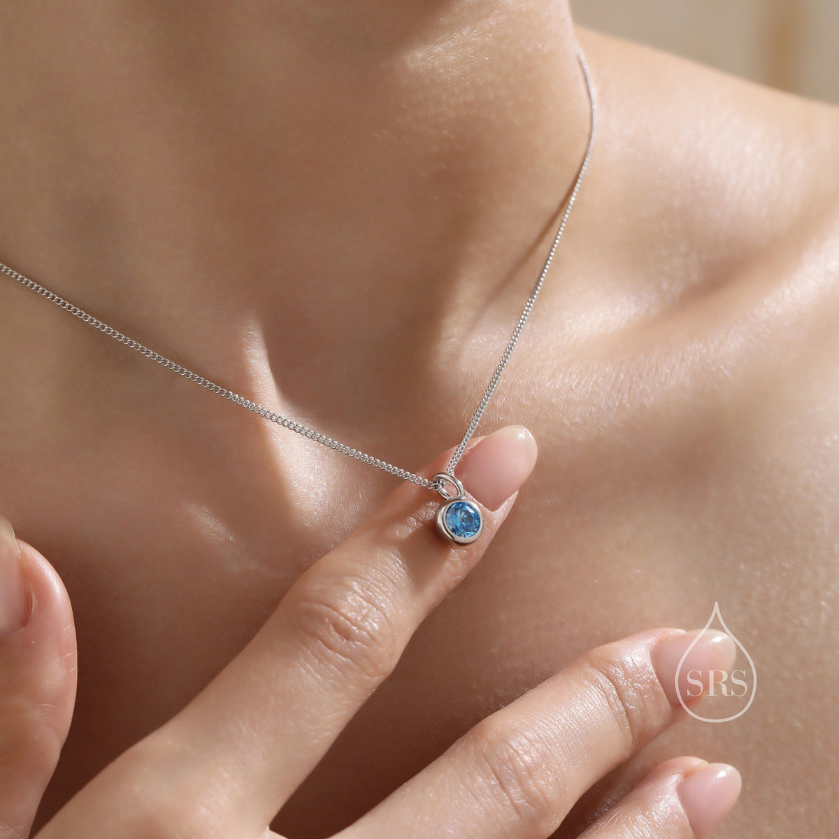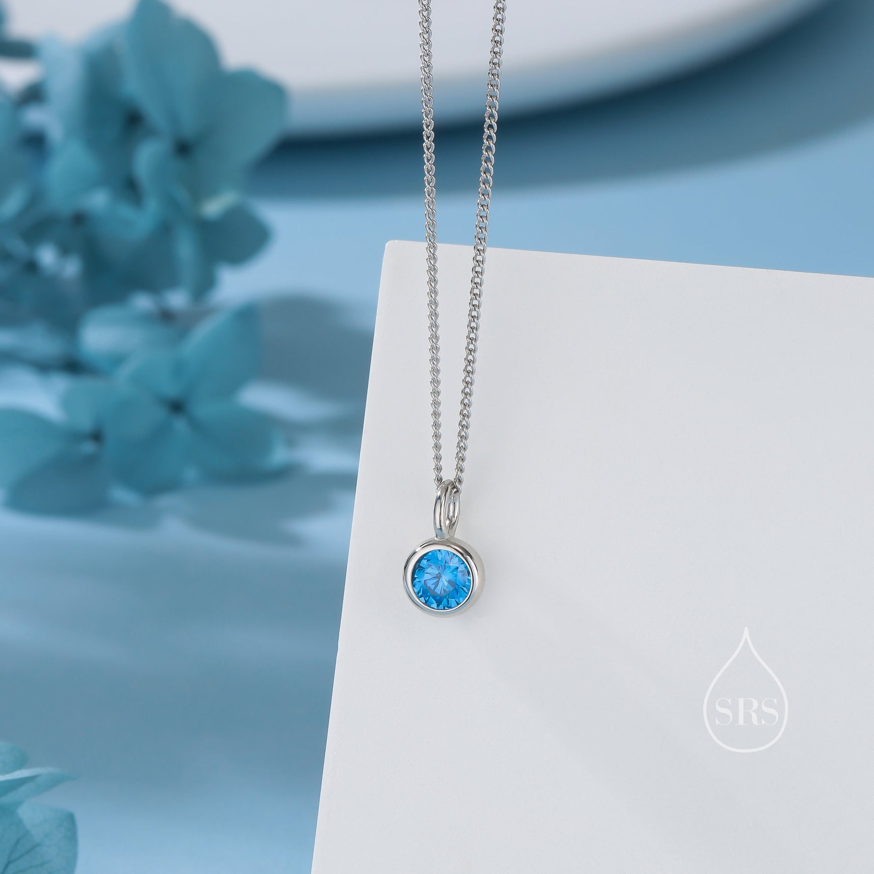 Aquamarine Blue CZ Bubble Pendant Necklace in Sterling Silver, Silver or Gold or Rose Gold, 1 Ct Zircon Bezel Necklace, March Birthstone
