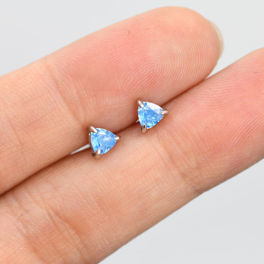 Trillion Cut Aquamarine Blue CZ Stud Earrings in Sterling Silver, Silver or Gold, Trillion Cut Zirconia Earrings, Double Pronged, Tiny Stud