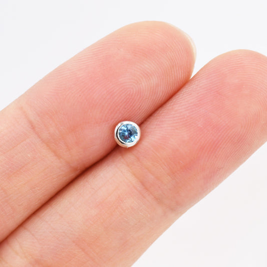 March Birthstone Aquamarine Blue CZ Stud Earrings in Sterling Silver, Extra Tiny Blue Crystal Stud, 3mm Birthstone CZ Earrings