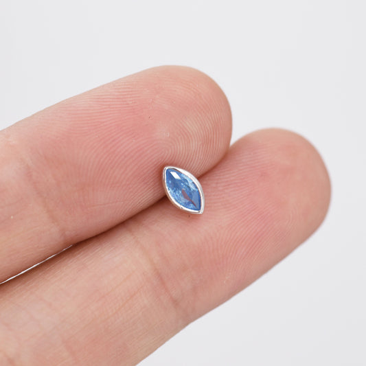 Marquise Aquamarine Blue CZ Stud Earrings in Sterling Silver, Marquise Crystal Earrings, Blue Stud, March Birthstone