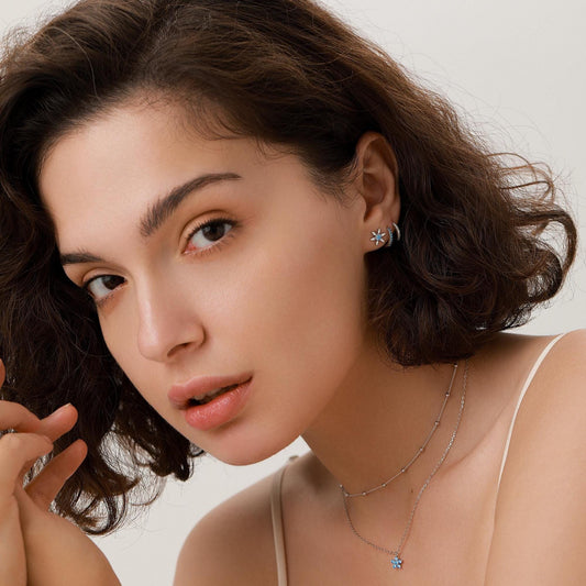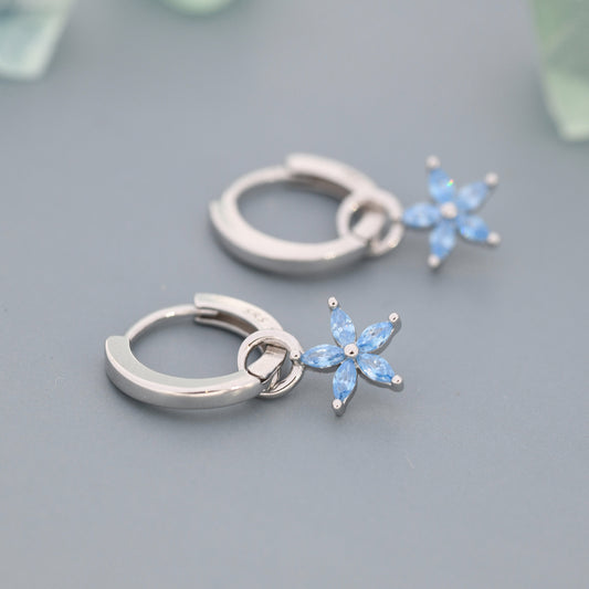 Aquamarine Blue Forget-me-not CZ Flower CZ Huggie Hoop in Sterling Silver, March Birthstone, Detachable and Interchangeable