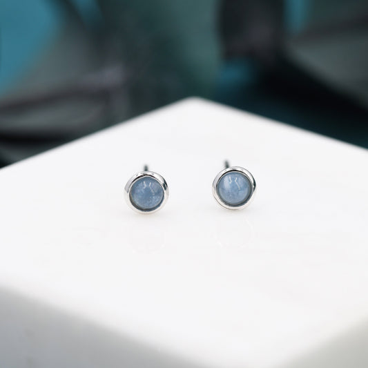 Sterling Silver Tiny Aquamarine Stud Earrings, 3mm Genuine Aquamarine Stone, Semi-precious Jewellery