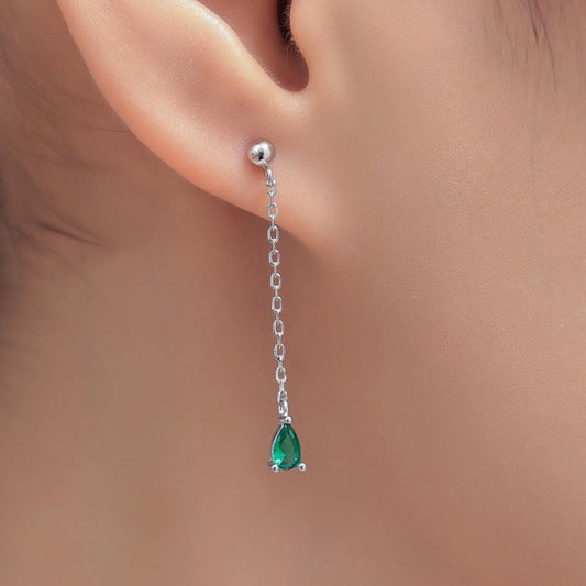 Emerald Green Droplet CZ with Chain Dangle Stud Earrings in Sterling Silver, Silver or Gold, Green CZ Pear Drop Earrings