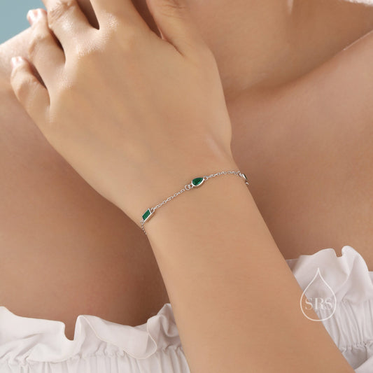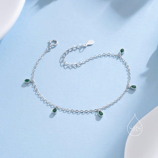 Emerald Green CZ Droplet Bracelet in Sterling Silver, Silver or Gold, Silver Blue CZ Pear Cut Bezel Bracelet, CZ Cluster Bracelet