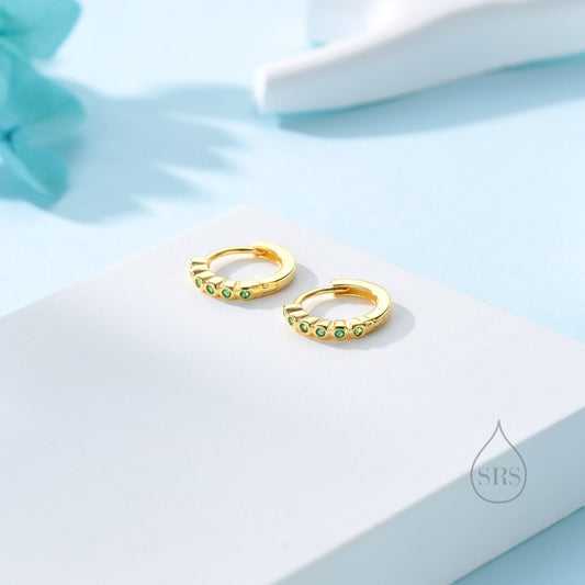 Emerald Green CZ Bezel Huggie Hoop in Sterling Silver, 8mm, Silver or Gold, Green Minimalist Simple Hoop Earrings, Green CZ Hoops