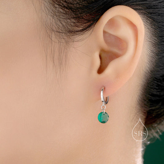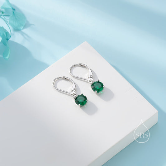 Emerald Green CZ Lever Back Hoop in Sterling Silver, 2 Sizes Available, 6mm or 6.5mm, Minimalist Simple Crystal Leverback Hoop Earrings