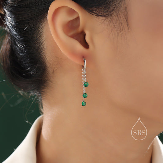 Emerald Green CZ Cascade Huggie Hoop Earrings in Sterling Silver, Silver or Gold, Geometric CZ Dangle Hoop Earrings, CZ Hoop Earrings