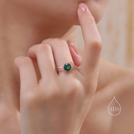 1 Carat Emerald Green CZ Ring in Sterling Silver, 6mm Green Zircon Ring, US Size 5-8, Six Prong Ring, May Birthstone
