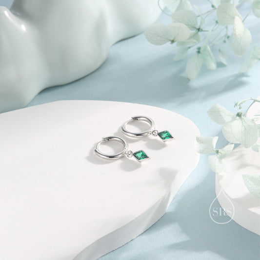 Tiny Rhombus Emerald Green CZ Huggie Hoop in Sterling Silver, Silver or Gold, Minimalist Simple Kite Shape CZ Hoop Earrings