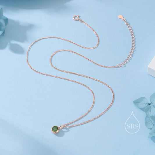 Emerald Green CZ Bubble Pendant Necklace in Sterling Silver, Silver or Gold or Rose Gold, 1 Ct Zircon Bezel Necklace, May Birthstone