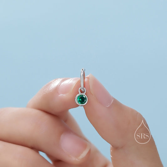 Emerald Green CZ Huggie Hoop Earrings in Sterling Silver with Sleeper Hoops, Detachable, Silver or Gold or Rose Gold, CZ Skinny Hoops