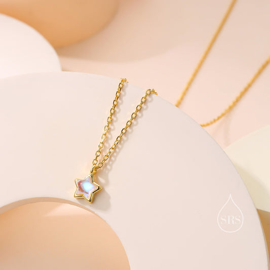 Moonstone Star Pendant Necklace in Sterling Silver, Silver or Gold, Aurora Star Necklace, Moonstone Star Necklace