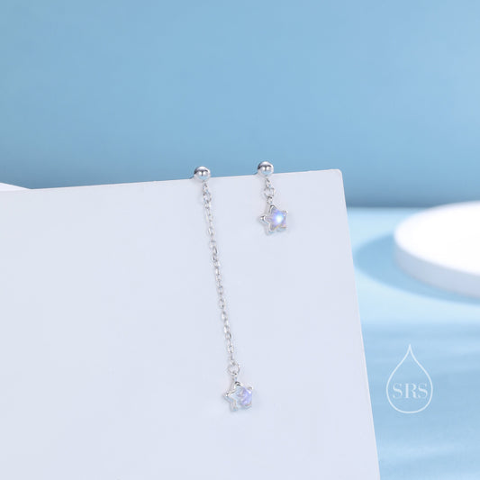Moonstone Star Threader Earrings in Sterling Silver, Silver or Gold, Lab Moonstone Star Ear Threaders