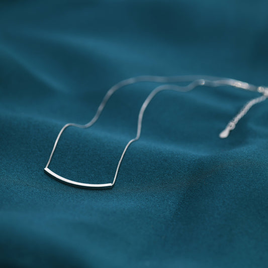 Curved Bar Necklace in Sterling Silver, Bar Necklace, Smile Necklace, Curved Necklace