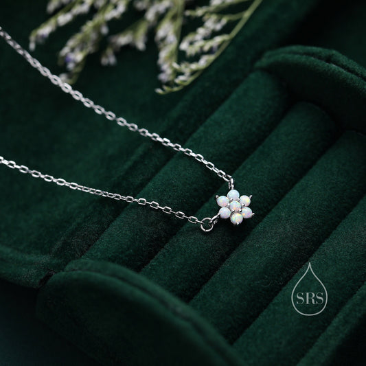 Extra Tiny Fire Opal Flower CZ Pendant Necklace in Sterling Silver, October Birthstone Necklace, Tiny Opal Necklace, Opal Snowflake Necklace