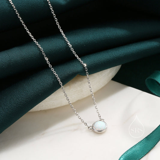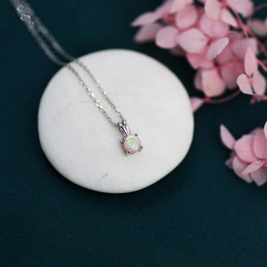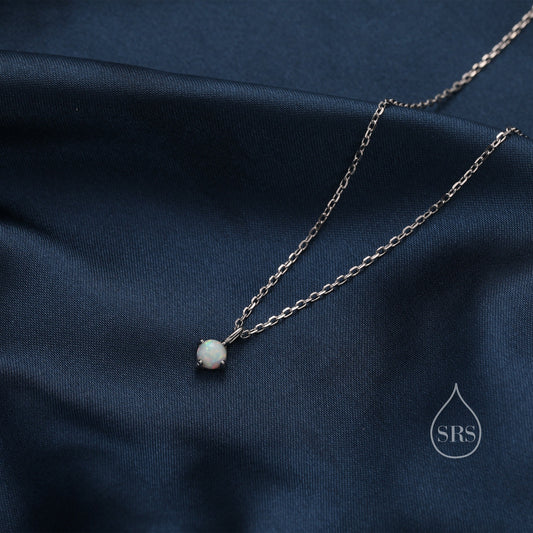 Tiny White Opal Pendant Necklace in Sterling Silver, 5mm Lab Opal Necklace, Single Opal Necklace, Fire Opal Necklace