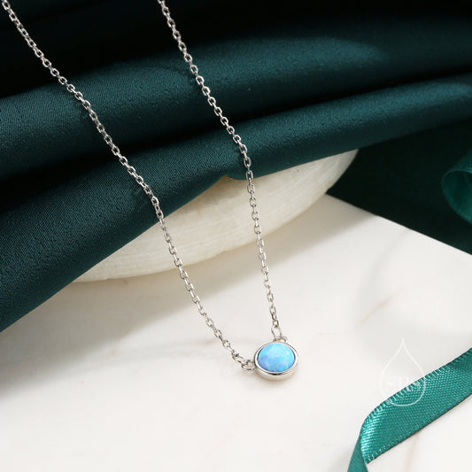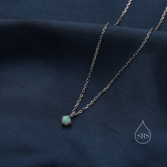Tiny Blue Opal Pendant Necklace in Sterling Silver, 5mm Lab Opal Necklace, Single Opal Necklace, Fire Opal Necklace