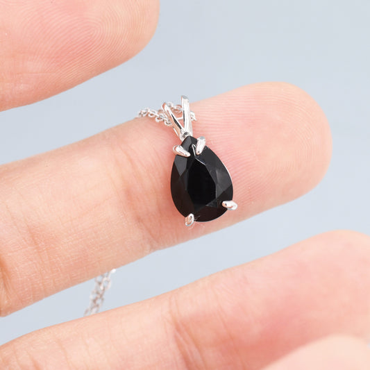 Onyx Black Pear Cut CZ Necklace in Sterling Silver, 7 x 9mm, Droplet Black Diamond Necklace, Diamond CZ