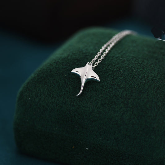 Manta Ray Pendant Necklace in Sterling Silver, Ray Fish Necklace, Stingray Necklace