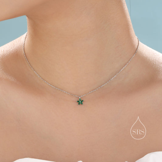 Tiny Emerald Green CZ Flower Necklace in Sterling Silver, Silver or Gold, CZ Flower Necklace, CZ Cluster Floral Necklace