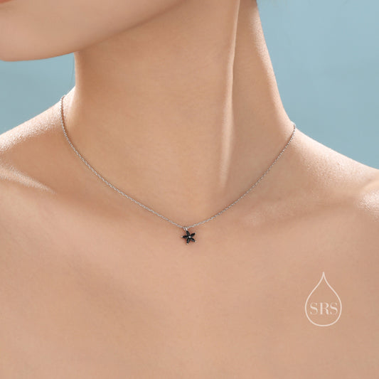 Tiny Black CZ Flower Necklace in Sterling Silver, Silver or Gold, CZ Flower Necklace, CZ Cluster Floral Necklace