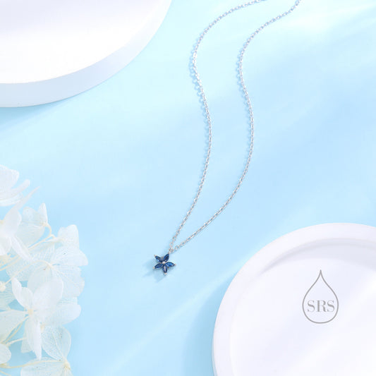 Tiny Sapphire Blue CZ Flower Necklace in Sterling Silver, Silver or Gold, CZ Flower Necklace, CZ Cluster Floral Necklace