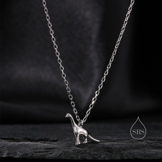 Extra Tiny Dinosaur Pendant Necklace in Sterling Silver, Adjustable 16'' - 18''; - Silver or Gold or Rose Gold, Brachiosaurus Necklace