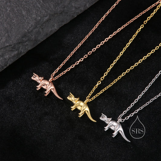 Triceratops Dinosaur Pendant Necklace in Sterling Silver, Shark Necklace, Silver or Gold or Rose Gold, Small Triceratops Dinosaur Pendant