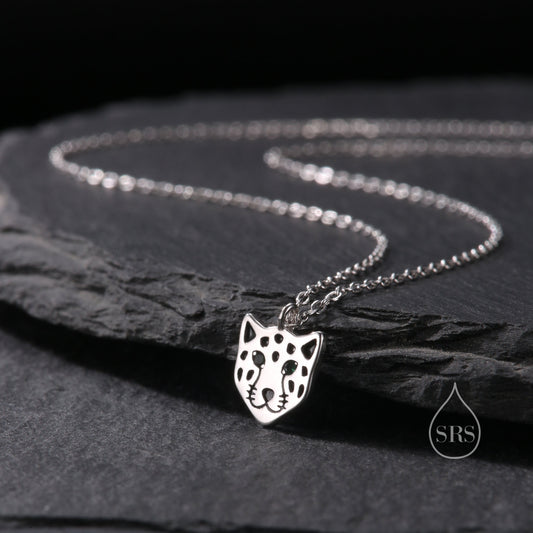 Tiny Leopard Face Pendant Necklace in Sterling Silver, Leopard Necklace, Small Leopard Pendant, Silver or Gold, Leopard Face Necklace