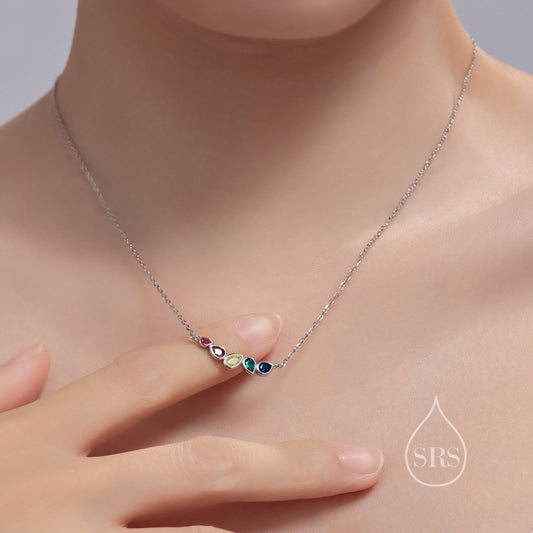Rainbow Droplet Cluster Pendant Necklace in Sterling Silver, Silver or Gold, Silver Rainbow CZ Pear Cut Necklace, Rainbow CZ Cluster Pendant