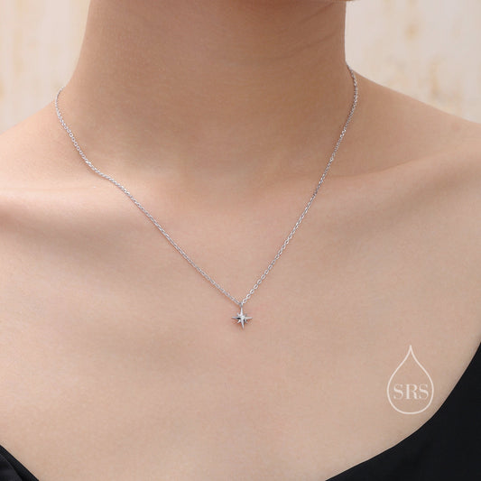 Extra Tiny North Star Pendant Necklace in Sterling Silver, Silver or Gold or Rose Gold, Starburst Necklace, Tiny Star Necklace
