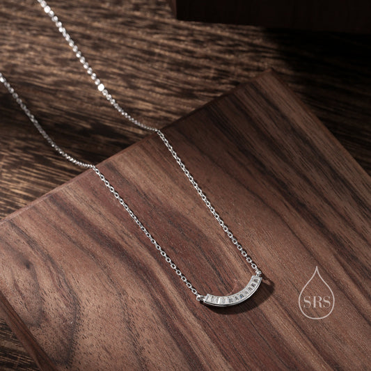 Curved Bar CZ Pendant Necklace in Sterling Silver, Silver or Gold, Silver CZ Curved Bar Necklace, Smile Necklace, CZ Cluster Pendant