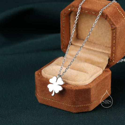 Tiny Four Leaf Clover Pendant Necklace in Sterling Silver, Silver or Gold, Irish Jewellery