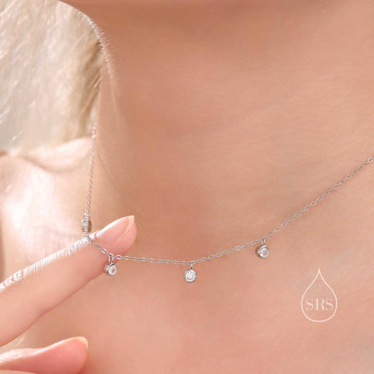 CZ Crystal Charm Necklace in Sterling Silver, Silver or Gold, Satellite Crystal Necklace, Solid Silver Necklace