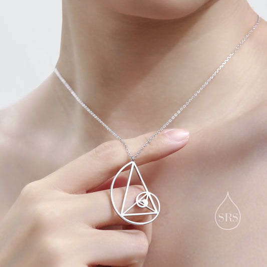 Fibonacci golden spiral Pendant Necklace in Sterling Silver, Silver Gold or Rose Gold. Golden Ratio Necklace.