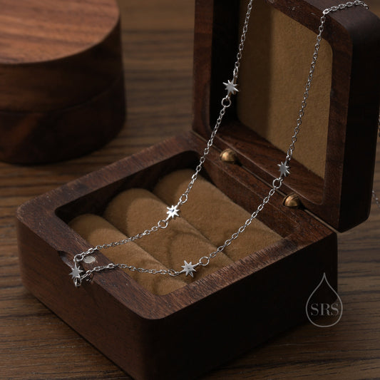 Extra Tiny Starburst Necklace in Sterling Silver, Five Floating Stars Necklace, Adjustable Length, Extra Small Pendant, 16 inch to 18 inch