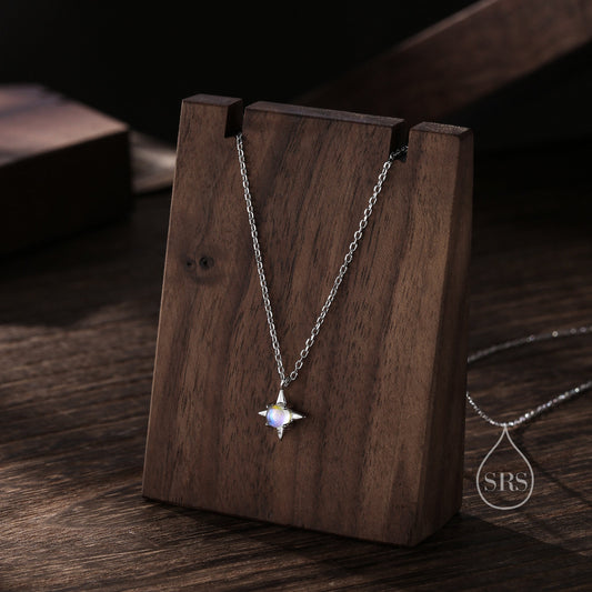 Tiny Moonstone Star Pendant Necklace in Sterling Silver, Silver or Gold, Aurora Four Point Star Necklace, Moonstone Star Necklace, Starburst