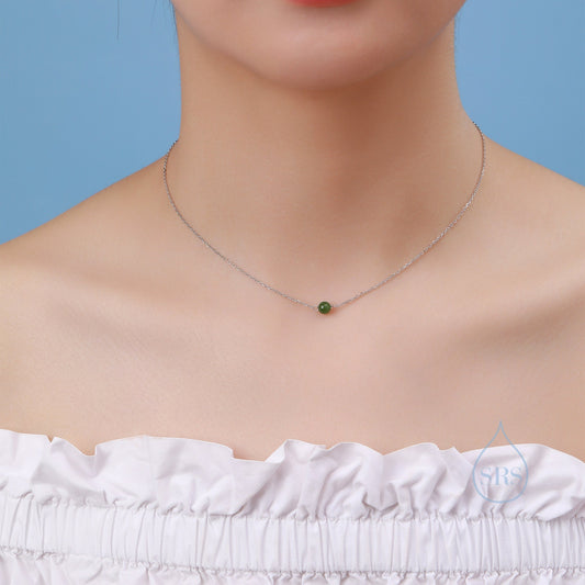 Jade Bead Necklace in Sterling Silver, Jade Necklace, Single Jade Necklace, Genuine Jade Crystal, Natural Jade Stone Necklace