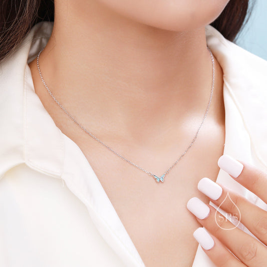 Extra Tiny Opal Butterfly Necklace in Sterling Silver, Silver or Gold, Blue Opal or White Opal Necklace