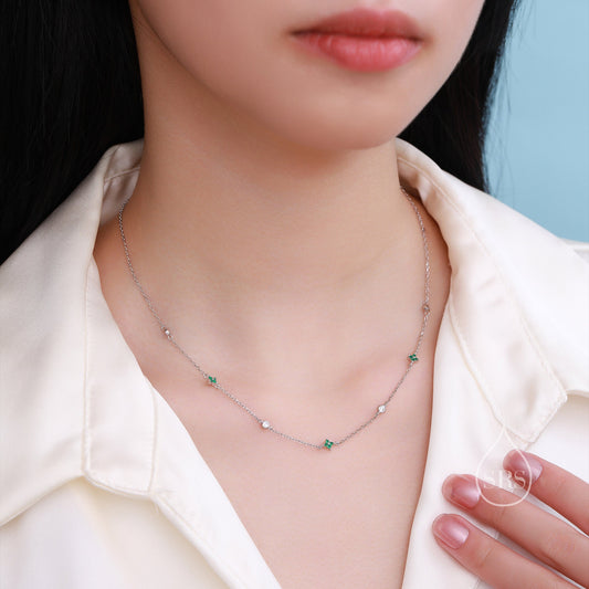 Hydrangea Flower Motif CZ Necklace in Sterling Silver, Silver or Gold, Emerald Green or Clear Three CZ Satellite Crystal Necklace,