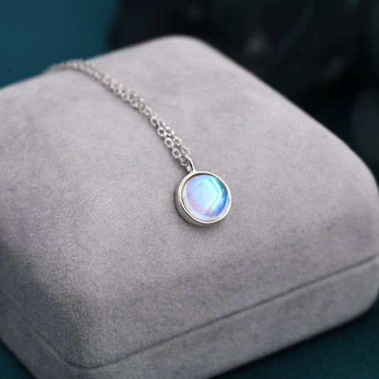 Moonstone Coin Pendant Necklace in Sterling Silver, Round Moonstone Necklace, Circle Shape Moonstone Necklace, Aurora Crystal, AB Crystal