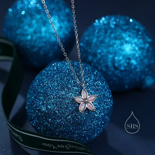 Opal Flower Pendant Necklace in Sterling Silver with Opal, Blue, White or Pink Opal, Opal Necklace, Forget me not Necklace