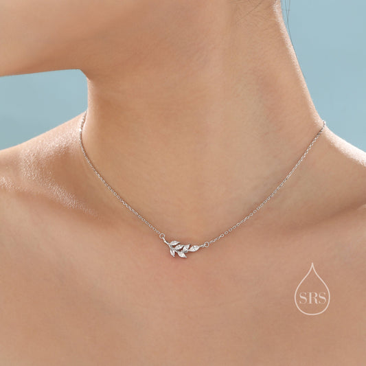 Clear CZ Leaf Pendant Necklace in Sterling Silver, Silver or Gold, Olive Leaf Necklace, Olive Branch Necklace, Nature Inspired