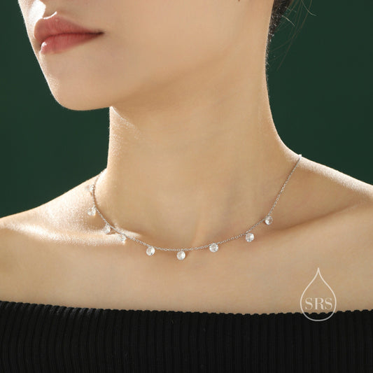 Clear CZ Dangle Necklace in Sterling Silver, Silver or Gold, Satellite Crystal Necklace, Solid Silver Motif Necklace