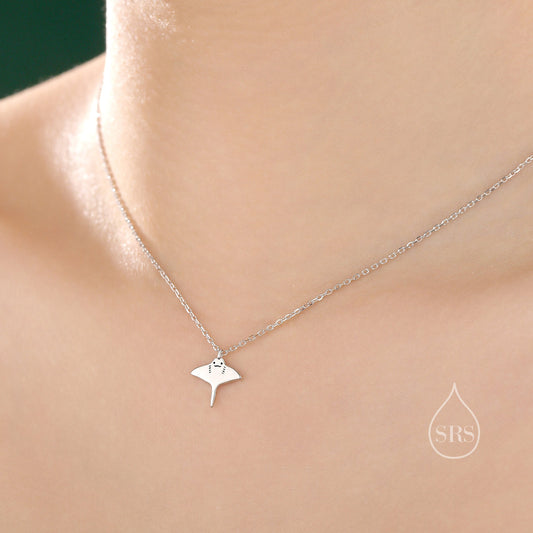 Tiny Smiling Manta Ray Pendant Necklace in Sterling Silver, Silver or gold, Manta Ray Necklace, Stingray Fish Necklace, Cute Fish Necklace