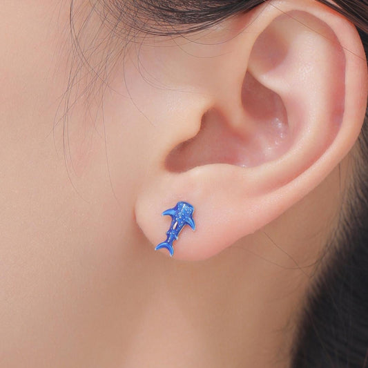 Very Tiny Whale Shark Stud Earrings in Sterling Silver with Hand Painted Enamel, Cute Whale Shark Earrings