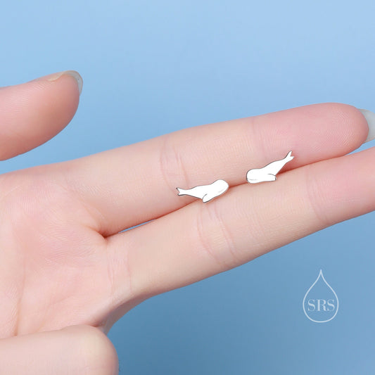 Beluga Whale Stud Earrings in Sterling Silver, Whale Fish Earrings, Tiny Fish Earrings, Whale Earrings